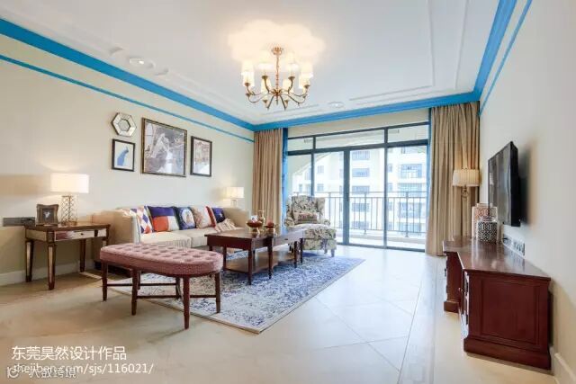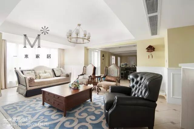 广州市美迪雅家具有限公司客厅的色彩以自然色调为主,绿色、土褐色最为常见,壁纸多为纯纸浆质地;家具颜色多仿旧漆,式样厚重;设计中多有地中海样式的拱。在古典中带有一点随意,摒弃了过多的繁琐与奢华,兼具古典主义的优美造型与新古典主义的功能配备,既简洁明快,又温暖舒适。