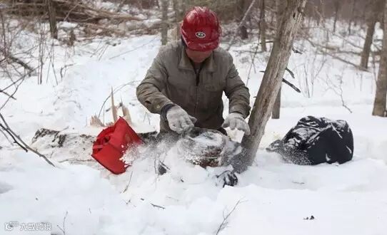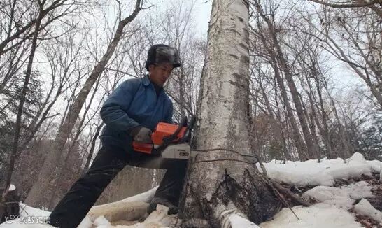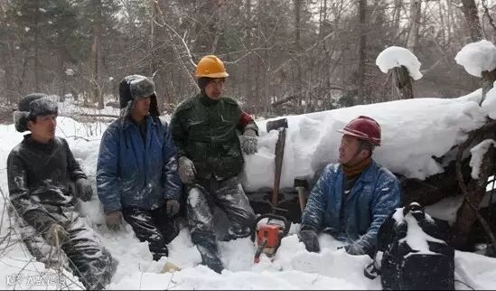 ▍这只采伐队共16人,分为2个班,每8个人一个班,一天工作近12小时。从2014年11月初进山采伐开始到4月末结束,周六周日照常工作,中间只有年三十才能休息到大年初五。采伐工候久生在伐区伐木。