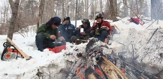 ▍户外接近零下30摄氏度的气温,只要稍微一停下来,被寒风一吹,浑身便冻得受不了。中午11时许,工作了一上午的工人们在林中小憩。