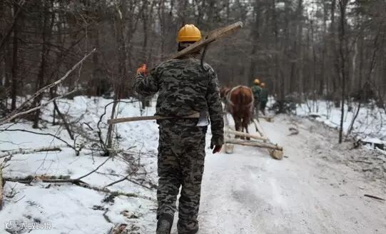 ▍在吉林延边州八家子林业局升平林场,有一只用传统的方式伐木的砍伐队,他们顶着零下30多度的低温踏雪采伐。2015年初吉林继黑龙江后将全面停止商业采伐,不久后这些采伐工人也不得不被迫转岗就业。
