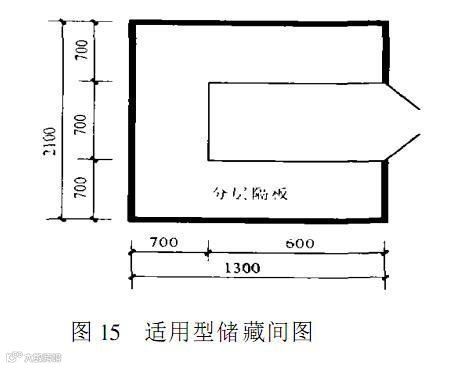 建筑面积 130㎡及以上的套型应设置储藏间,以便住户存放杂物之用。它的“适用”尺寸大致如图 15 所示。将其开间进深各增加300 或 600 可使其达到“舒适”或“高舒适”要求。
