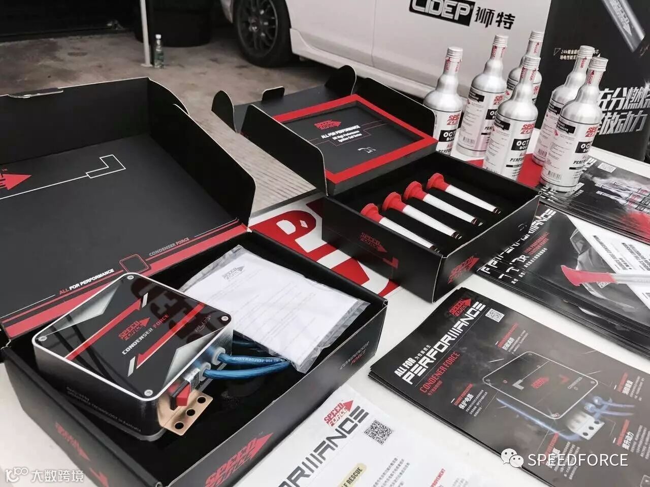 澳洲SpeedForce品牌展示品:SPEEDFORCE D.R点火线圈、SPEEDFORCE O.B辛烷值添加剂、SPEEDFORCE C.F Plus电子整流器。