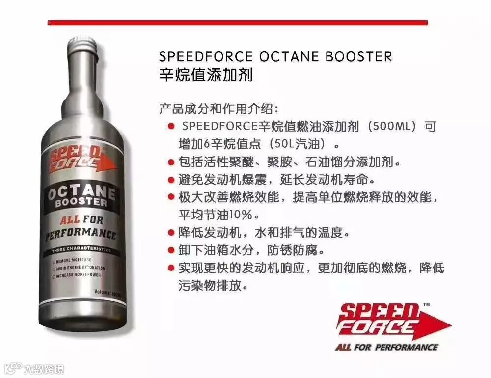 有SPEEDFORCE品牌的Octane Booster辛烷值燃油添加剂助力,使新势力TPR战车如虎添翼,激发更大动力,由头带到尾!