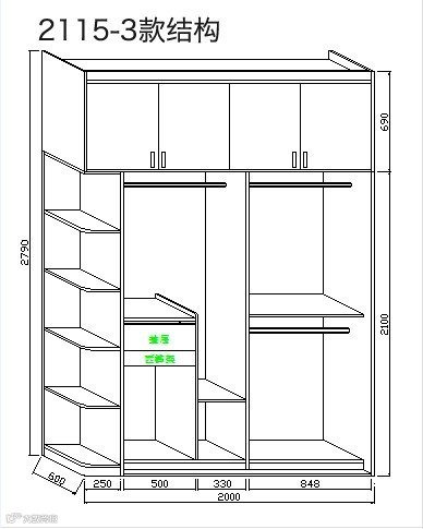 4、挂短衣或套装的柜体高度不低于800cm;挂长大衣的柜体高度不低于1300mm;抽屉的高度不低于150mm~200mm;至于叠放衣物的柜体,以衣物折叠后的宽度来看,柜体设计时宽度在330mm~400mm之间、高度不低于350mm;整个衣柜上端通常会设置成放置棉被等不常用物件,高度也要不低于400mm。