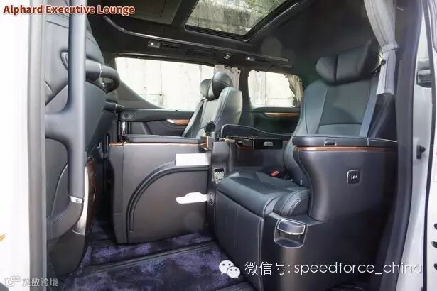 本地代理將Alphard的定位放於Vellfire之上,因此豪華程度及配套設備略為優勝,其中頂級版本被命名為Alphard Executive Lounge,重點設計包括前述的兩張中排Ottoman頂級電動座椅,這款座椅可說是仿照飛機頭等艙的乘客席而設計,除了提供全面的電動調校功能外,更在細節上花盡心思,座椅設有專為擺放文件/平板電腦以及手提電話而設的貯物格;手枕內設有線控中樞,可在此調控燈光明暗以至座位型態;另一邊手枕內藏小型工作枱,表面飾以深色仿桃木板,方便乘客以此用作小型工作平台或餐桌。總括而言,頂級版Alphard的中排設計,幾乎與飛機頭等艙乘客席無異。