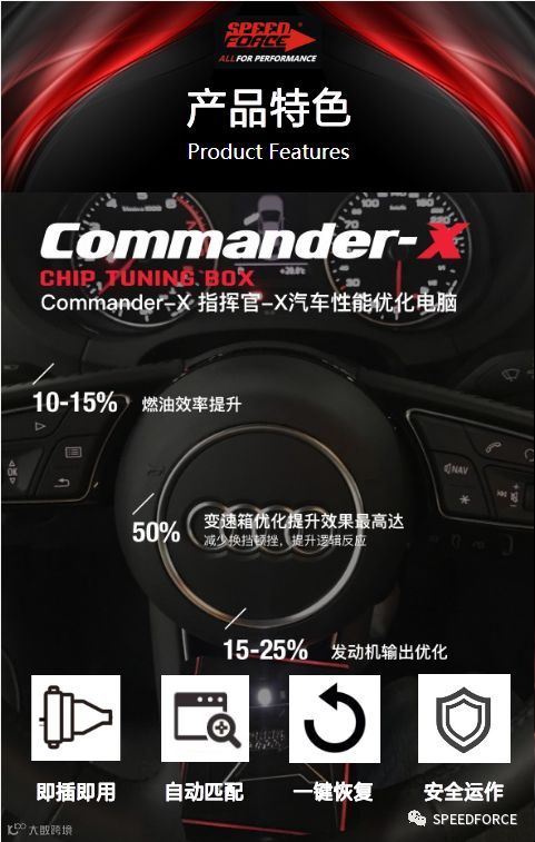 导读:澳洲虹箭™SPEEDFORCE 2018年度产品 Commander-X (指挥官-X) 汽车性能优化外挂电脑,发动机与变速箱优化电脑。