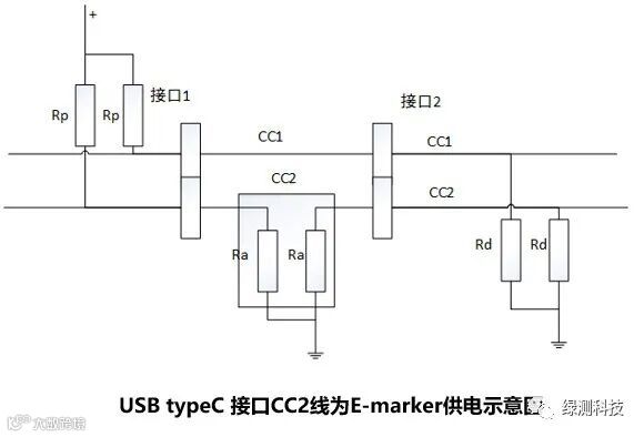 在typeC线缆插入时,sink通过上拉电阻Rp接入、source通过下拉电阻区分出VCONN线和CC线之后,VCONN将会对线缆上CC2的配置芯片(E-marker)进行供电。进行USB PD供电时,线缆上E-marker在VCONN供电后,可以向source标明线缆功率的识别、线缆ID及制造商信息等。