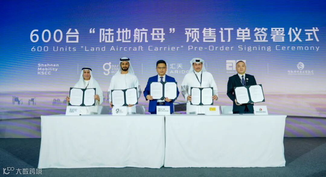 在活动现场,汇天与阿联酋Ali & Sons集团、卡塔尔Almana集团、科威特AlSayer集团和阿联酋中华工商总会签订中东地区首批600台飞行汽车订购协议,创下该领域海外最大批量订购纪录。未来,汇天将与上述合作伙伴共同推进飞行汽车在当地的法规认证、市场销售及多元化应用场景建设等合作。目前陆地航母已累计7000台订单。