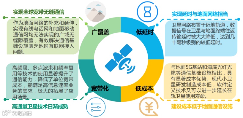 同5G相比,卫星互联网具有广覆盖、低时延、宽带化、低成本的特点,可解决现有世界上超30亿人无法使用互联网,70% 地理空间未实现互联网覆盖的问题,与5G网络形成互补,形成无缝衔接的通信网络。