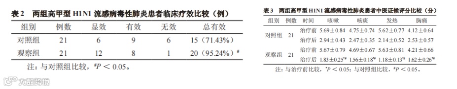 李林生[4]应用银翘散加味联合奥司他韦治疗甲型H1N1流感病毒性肺炎,结果显示该疗法能有效改善患者症状,抑制炎性反应。