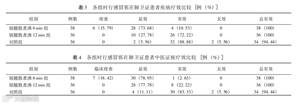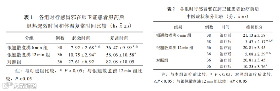 霍炳杰等[5]研究发现,不同煎煮时间下的银翘散在缩短流感患者退热起效时间和退热时间方面,均优于奥司他韦对照组。