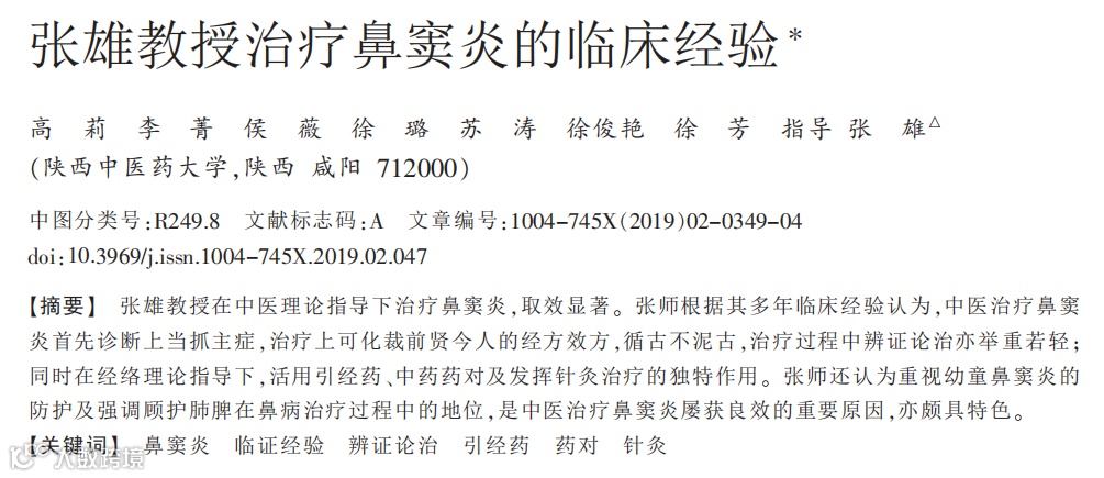[20]高莉,李菁,侯薇,等.张雄教授治疗鼻窦炎的临床经验[J].中国中医急症,2019,28(2):349-351,355.