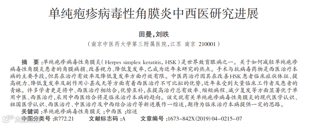 [18]田曼,刘昳.单纯疱疹病毒性角膜炎中西医研究进展[J].辽宁中医药大学学报,2019,21(4):215-221.
