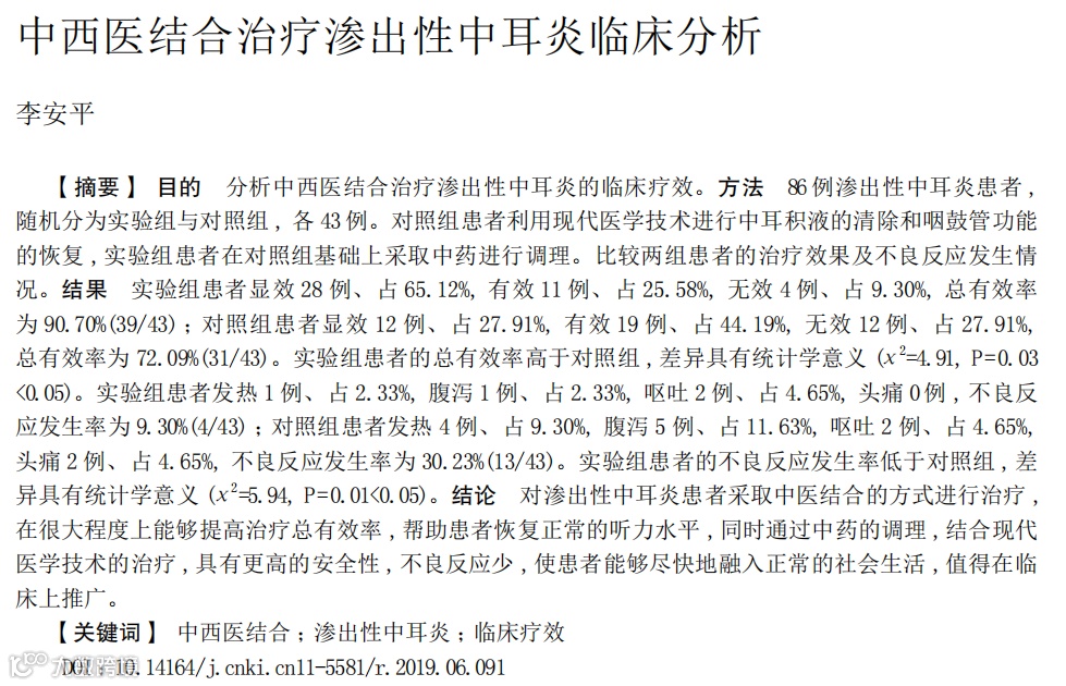 [19]李安平.中西医结合治疗渗出性中耳炎临床分析[J].中国现代药物应用,2019,13(6):148-149.