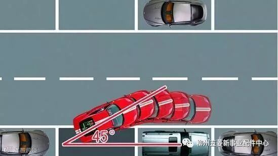 3.当车和前车成45度角时,往左打满方向盘,继续倒车