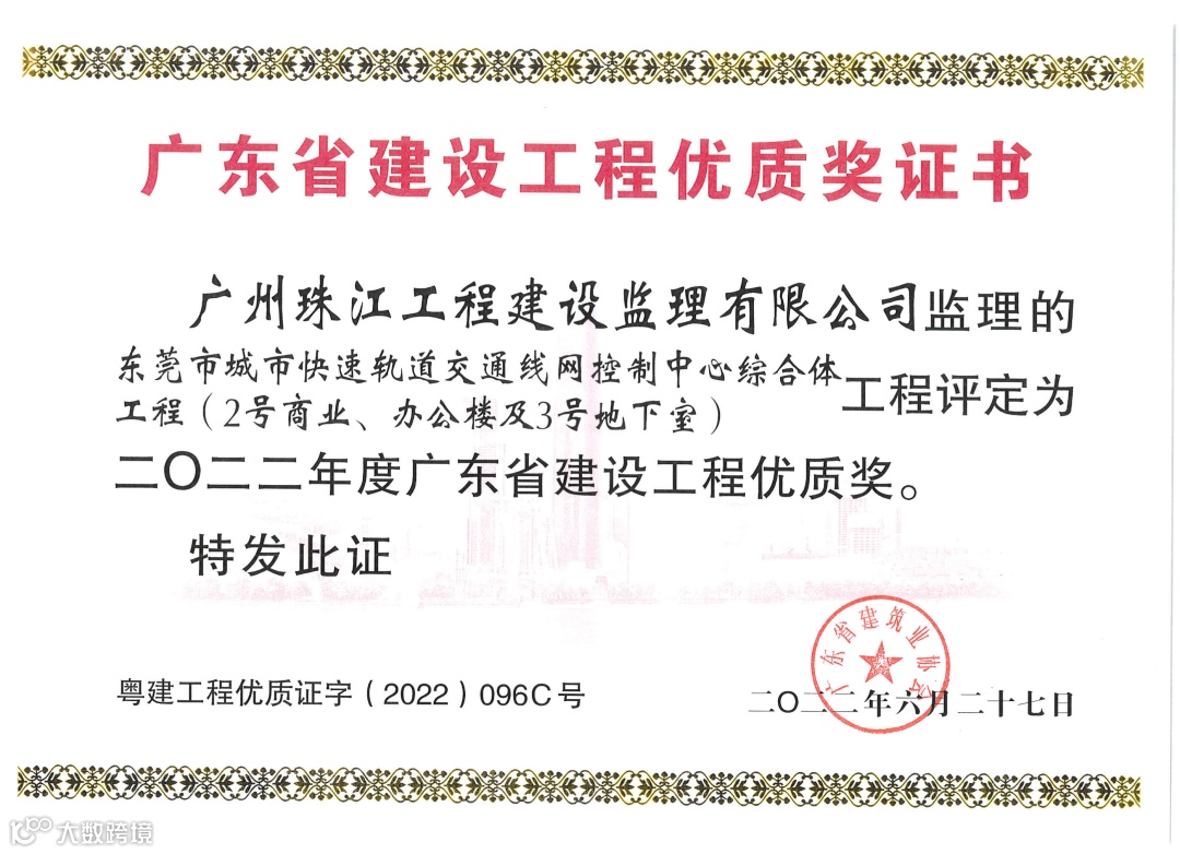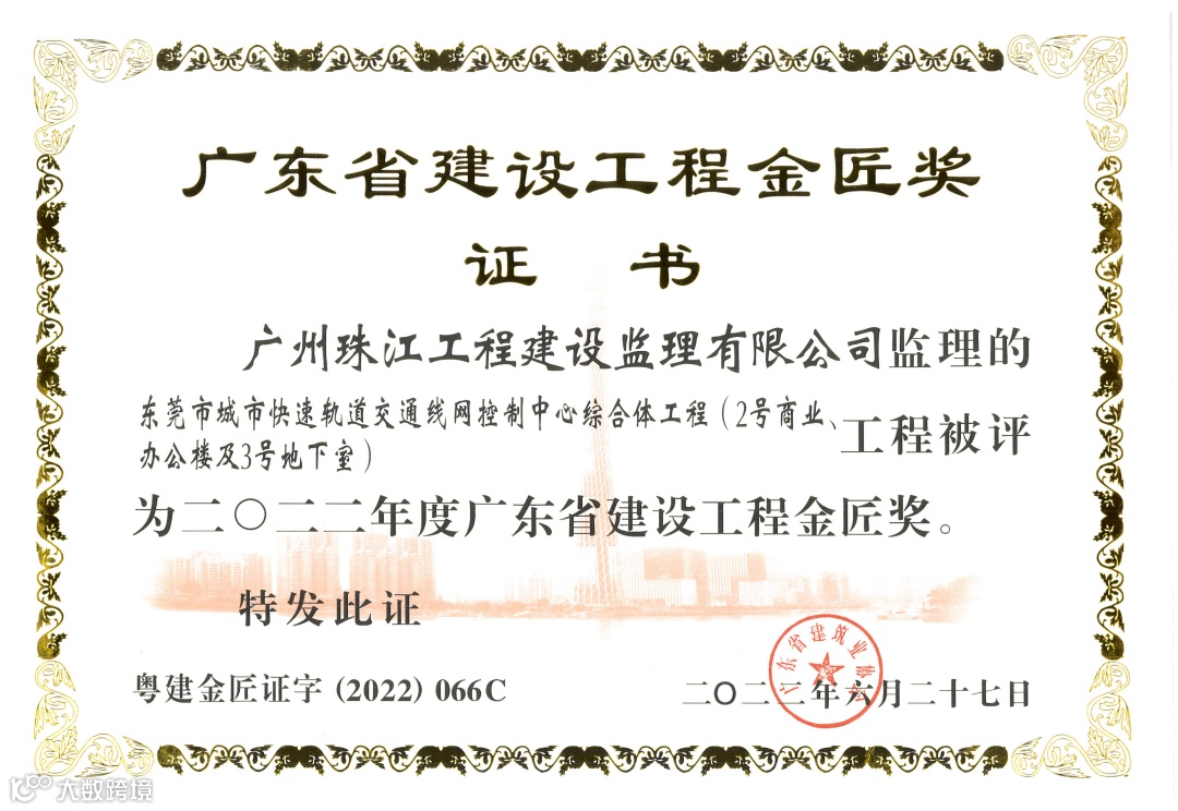 东莞市城市快速轨道交通线网控制中心综合体工程(2号商业、办公楼及3号地下室)(简称“东莞OCC”)荣获2022年度广东省建设工程优质奖和金匠奖。