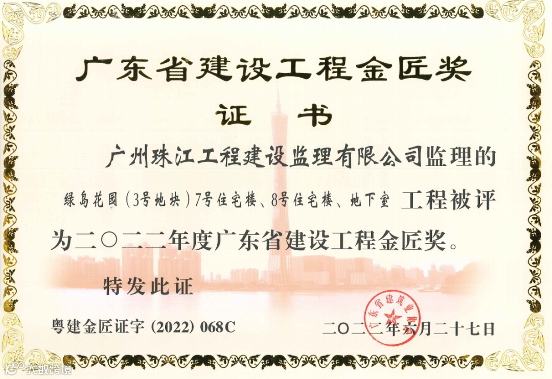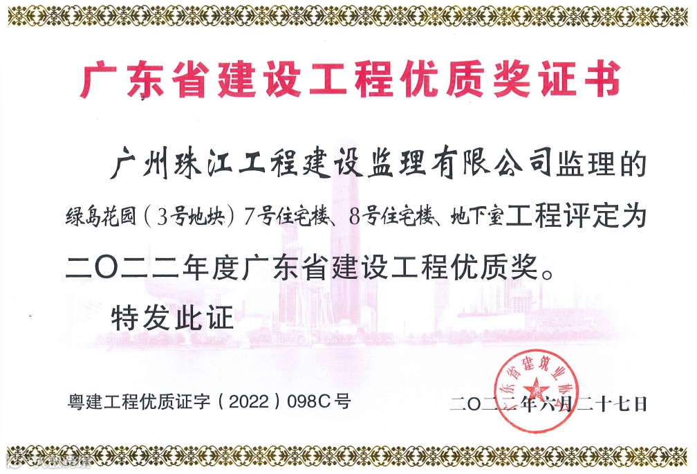 绿岛花园3号地块项目荣获2022年度广东省建设工程优质奖和金匠奖。