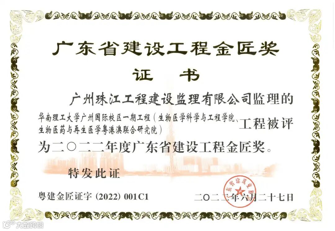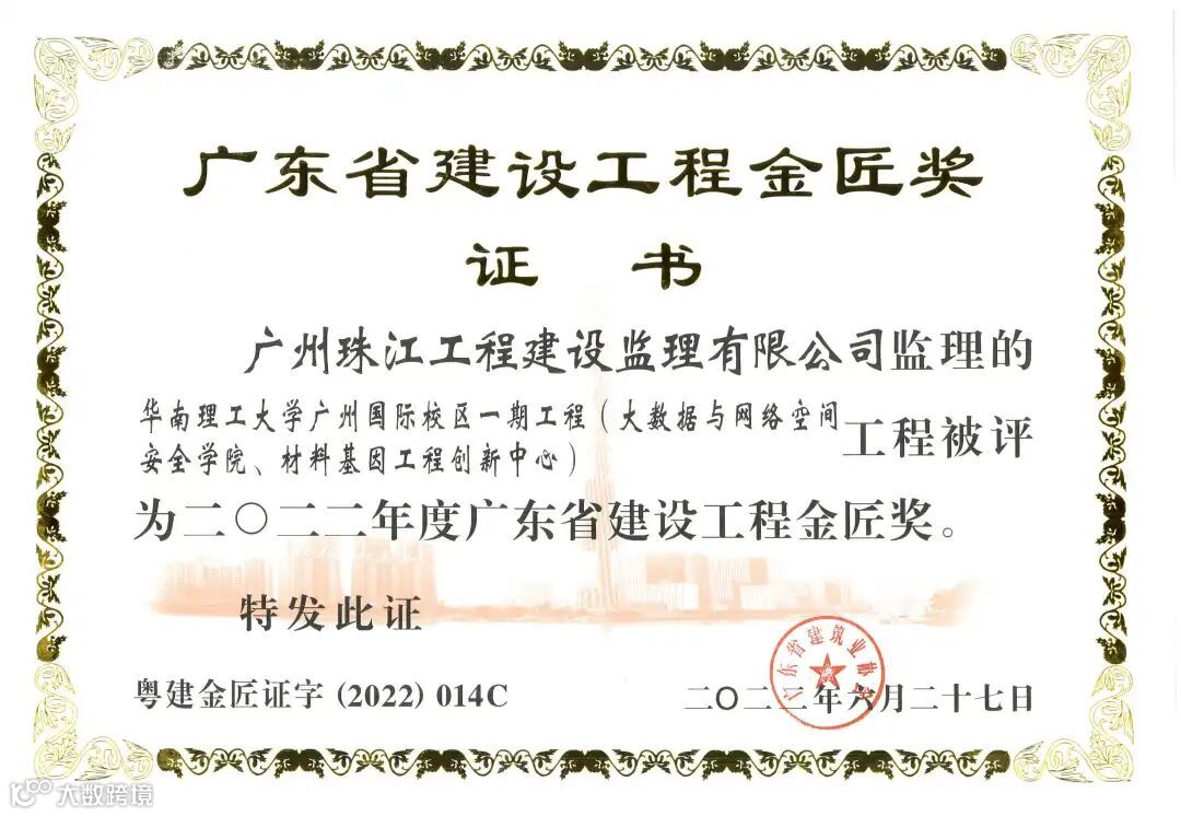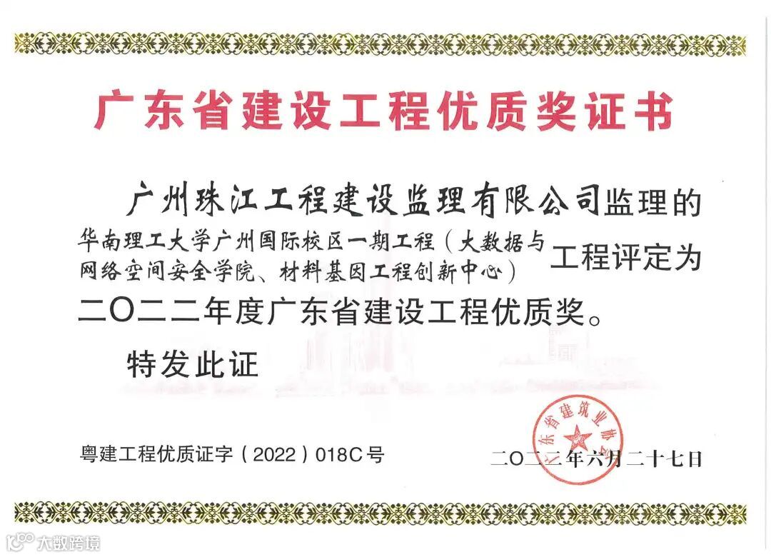 华南理工大学广州国际校区一期工程(简称:华工国际校区一期项目)荣获“2022年度广东省建设工程金匠奖”和“2022年度广东省建设工程优质奖”。
