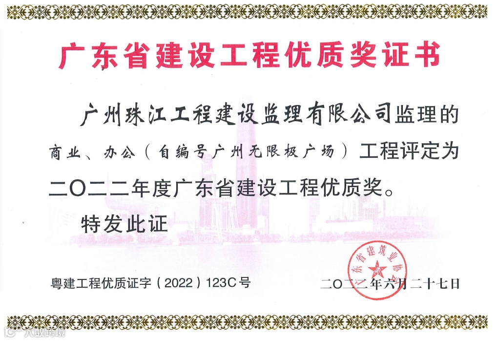 广州无限极广场项目荣获2022年度广东省建设工程优质奖和金匠奖。