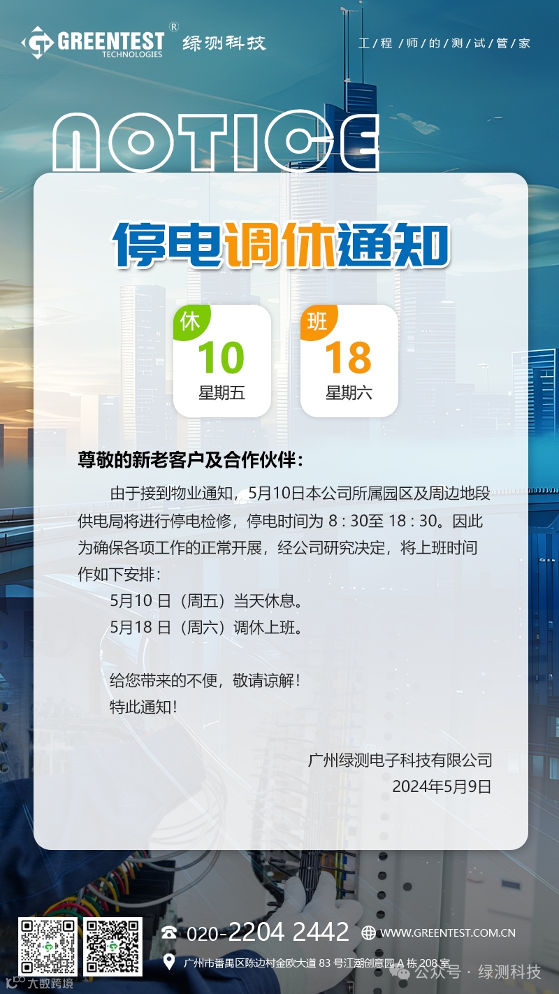 5月10日,停电调休通知! 绿测科技