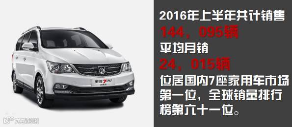 与宝骏560一样,宝骏730目前仅在中国单一市场销售。这款产品2014年7月30日推出,凭着对中国家庭结构和购车需求的准确预判,成功开拓了“七座家用车”蓝海,在MPV销量排行榜中位居第二。今年1-6月,宝骏730累计销售144,095辆,位居榜单第61位。