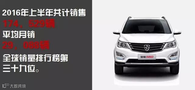 宝骏560 上榜车型中的两款新车之一 宝骏560今年1-6月累计销售174,529辆,在榜单中排名第39位。这款产品于2015年7月18日上市,在中国SUV的红海中凭着大空间、性价比开拓了一片蓝海,成为上榜车型中的两款新车之一。截至2016年6月,宝骏560以月均26,628辆的销售,上市12个月累计销售达319,536辆。