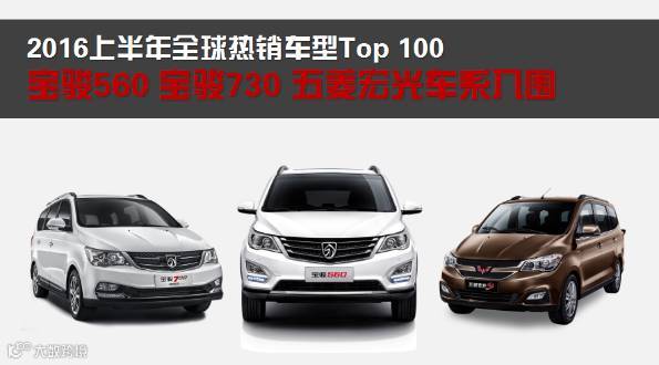 近日,由国际权威媒体发布的2016上半年全球前100款最热销车型的名单上,来自上汽通用五菱的五菱宏光以累计29.43万的销量,位列13名,成为上榜车型中最靠前的中国车型;宝骏560、宝骏730、五菱小卡分列第39位、61位、88位。据悉,这次统计的范围包括全球140个国家和地区在售的共计2700款车型。