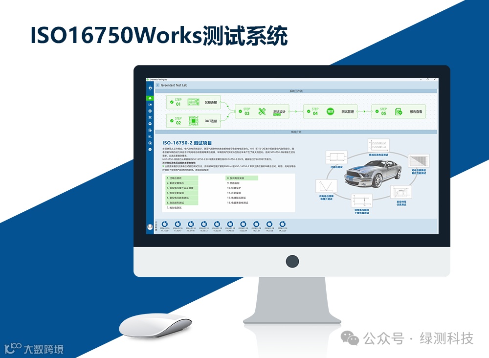 ISO16750Works 是一款由广州绿测电子科技有限公司开发的软件,用于模拟车辆启动、断路、低压等各种情况下车辆电气系统的变化。