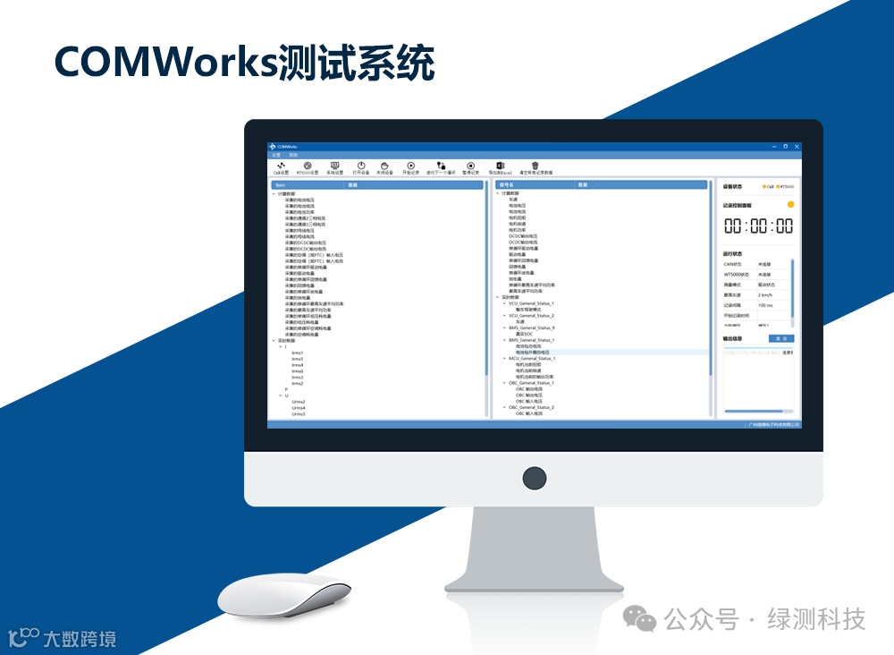 电池SOC作为电动汽车的研究重点,电池状况监控系统也需基于 CAN 网络构建:在电池、电机、空调等处配置能量流监测装置,其采集的数据通过 CAN 总线传输到汽车的控制系统进行分析。为了验证电池状况监控系统的可靠性与精度,需要将控制系统的分析结果与标准的功率分析仪所分析的作对比。然而,由于数据量大、时延要求高(以100ms的周期进行采集),在后期进行数据分析时,还需要人工比照采集时差,并且随着算法的复杂程度越来越高,数据量也来越大,测试复杂度也随之增加。为了提高测试效率,简化测试难度,暴露更多的设计问题,自动化测试系统变得尤为重要。为此,绿测科技联合汽车厂商推出了一款自动化测试的软件COMWorks,来提高测试效率。