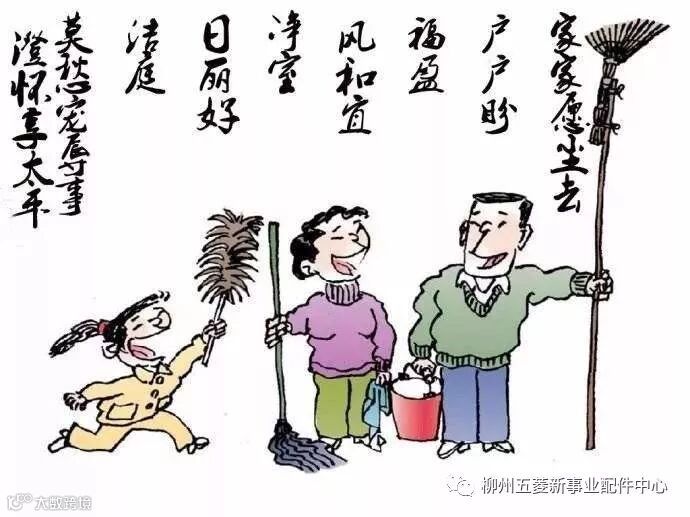 “腊月二十四,掸尘扫房子” ,据《吕氏春秋》记载,中国在尧舜时代就有春节扫尘的风俗。按民间的说法:因“尘”与“陈”谐音,新春扫尘有“除陈布新”的涵义,其用意是要把一切穷运、晦气统统扫出门。每逢春节来临,家家户户都要打扫环境,清洗各种器具,拆洗被褥窗帘,洒扫六闾庭院,掸拂尘垢蛛网,疏浚明渠暗沟。