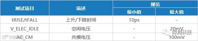 在USB4中,信号电平的上升和下降时间也做了一定的要求。过高的上升速率会引入更大的谐波分量,容易产生干扰。因此USB4中规定20%-80%的上升/下降时间不小于10ps。