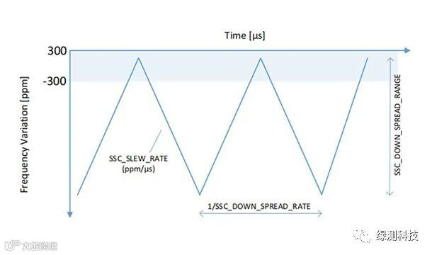 扩频时钟通过调制,降低时钟信号在同一个频率上的频谱振幅,也进而减少了电磁干扰。SSC的原理类似我们的频率调制,对传输讯号做一个三角波周期的频率调制。目前USB的SSC均采用下扩频方式进行调制。好处是不会产生高出预定频率的时钟信号。