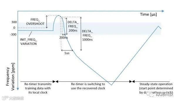 频率变化调整针对的是多个re-timer的training效果。为了保证传输信号调整的可靠性,因此需要进行接收机频率变化训练测试。