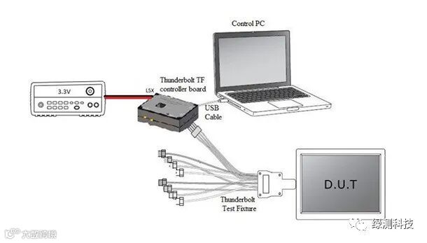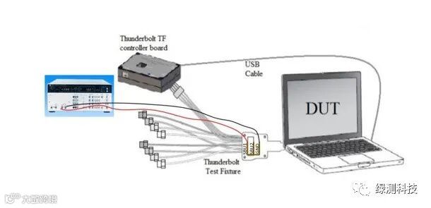 测试时,使用测试夹具引出SBU1和SBU2以及参考地信号,并使用TF controller进行控制,并使用示波器和万用表观察信号并判断是否符合标准要求