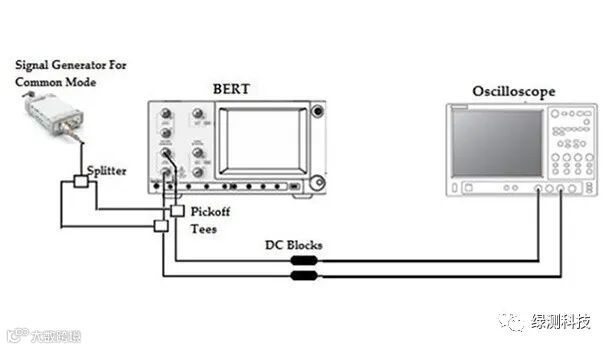 校准过程中需要使用误码仪发生发送码型、产生抖动,并外接上射频信号源用于提供共模骚扰。最后通过不同的信道方式连接到示波器上对输出波形进行校准。在这步里,需要针对数据依赖性抖动、共模电压输出、随机抖动、周期性抖动、总抖动以及输入眼图进行校准。将TP3’的结果记录为case1、TP3结果记录为case2