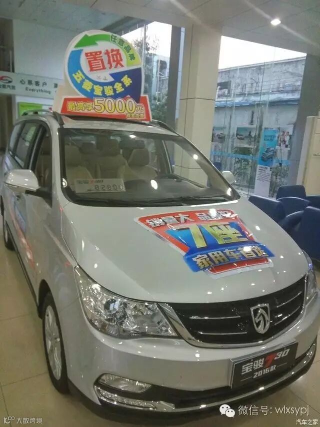 在店里逛了一下,最新的促销手段是任意品牌车置换宝骏旗下车型都优惠5000元!注意是置换哦,如果你是买首辆车,建议你把优惠期望值维持在1000-3000元之间就好了,以免希望越大失望越大。在个别地方甚至出现要强制买配件变相加价的情况,由此可见,这款车真的不愁卖,现在路上见的越来越多了。