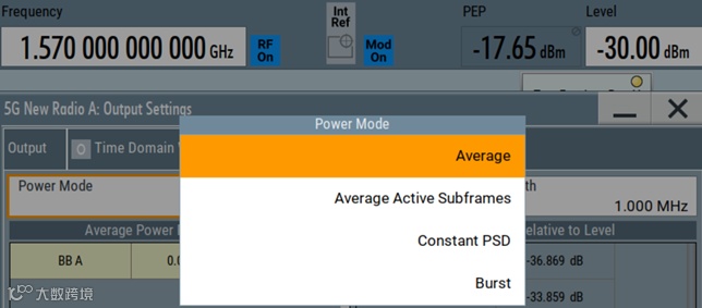 例如5G NR,Level的数值可以设置为:总的平均功率 / 激活子帧内平均功率 / 恒定功率密度 / 突发脉冲功率: