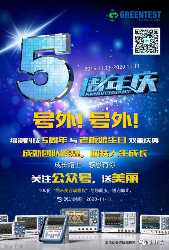 号外!号外!2020年11月11日,绿测科技5周年与老板娘生日双重庆典,在此重要的生日里邀您同庆!关注公众号,给您送美丽!