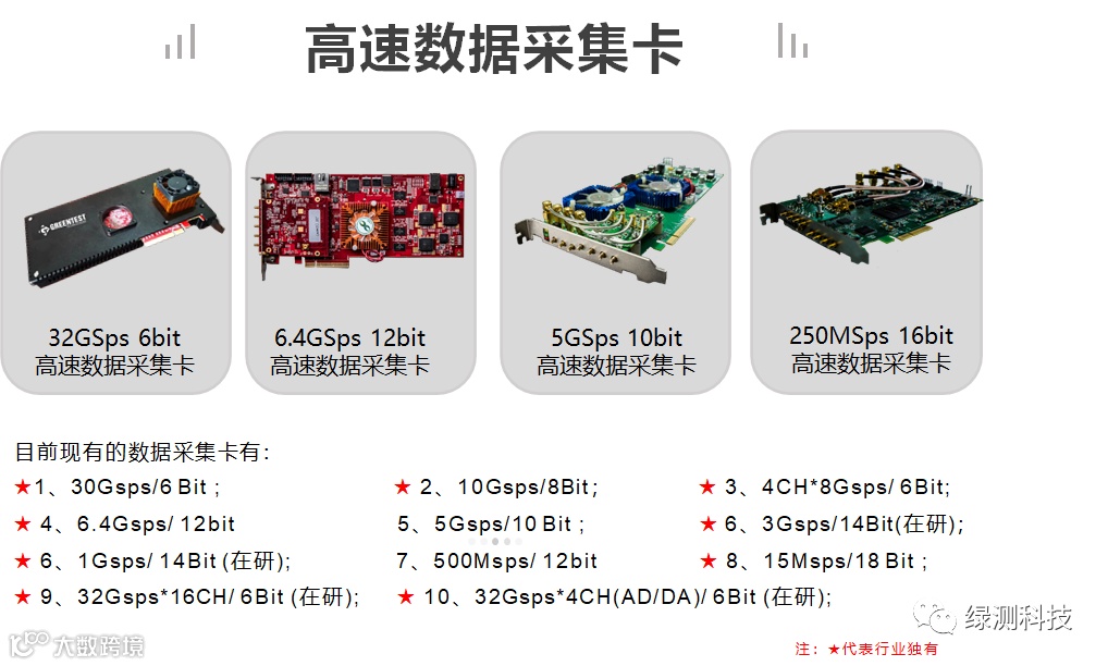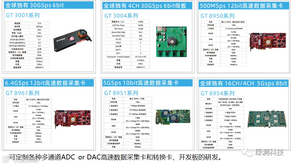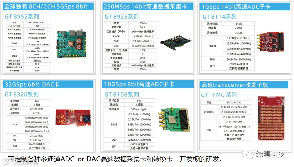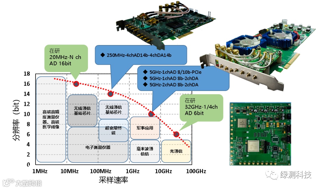 绿测科技通过自身的发展与各大科学研校的合作,开发出全球独一无二的高速数据采集卡,可应用于传感领域:分布式应变和温度传感器(DSTS),医学研究仪器(例如OCT)和分析飞行时间(MS-TOF)环境监测(LiDAR),超声波无损检测(NDT),激光测距/发射监测、超声成像以及高级研究实验室、高速示波器、光通信、THZ通信等。