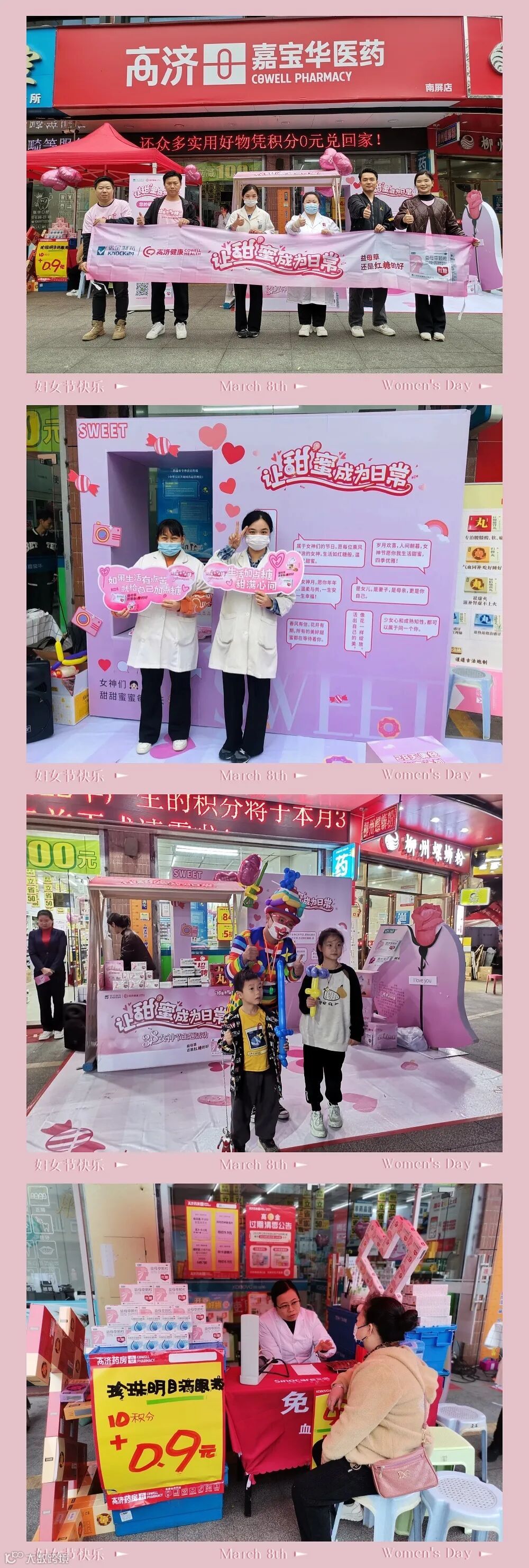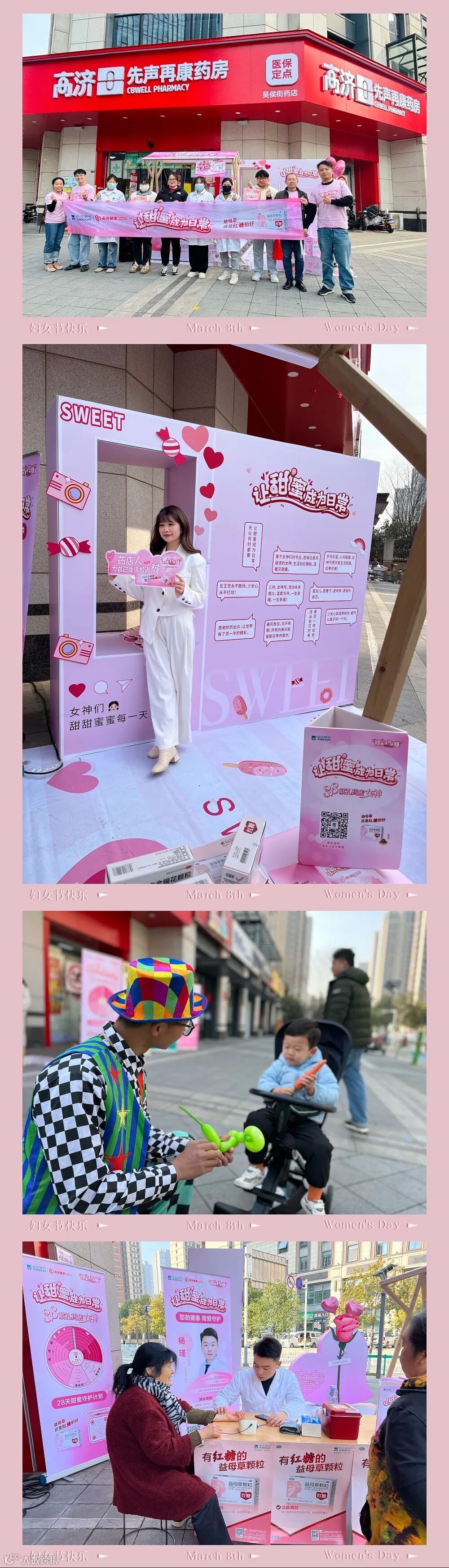 为此,诺金制药坚持第三年,在3月5-8日期间,由诺金团队分别前往高济健康以及全国各大连锁药店门店,给一线终端女药店人送上一份“甜蜜加糖礼包”。