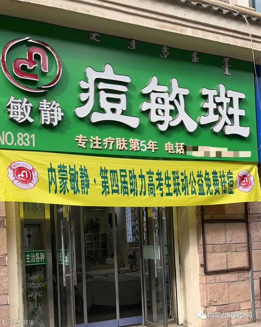 2021年内蒙敏静加盟店公益祛痘门头展示