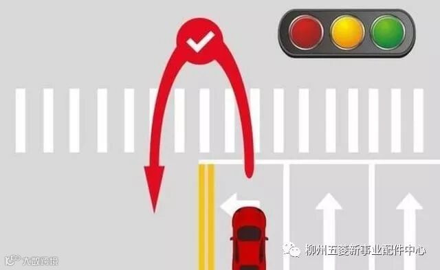 左转红灯和绿灯时都可以掉头,按图上的指示进行即可。不过需要满足其对应条件。