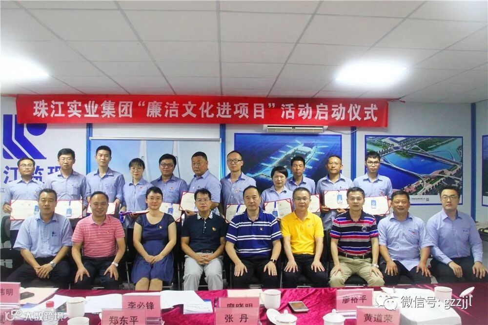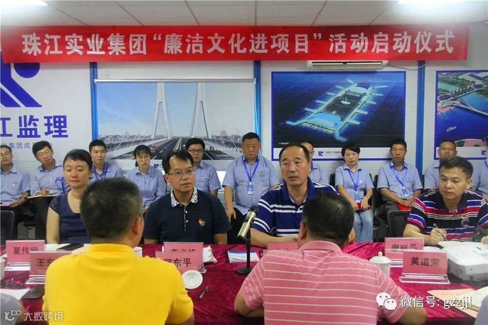 9月6日下午,珠江实业集团纪委在珠江监理洛溪大桥拓宽工程项目部举行“廉洁文化进项目”启动仪式。集团纪委书记李必锋,副总经理廖晓明,纪委副书记夏伟明,审计部副总经理廖裕平,珠江监理党委副书记、纪委书记张丹和长大公司项目部党支部书记郑东平等一同出席启动仪式。