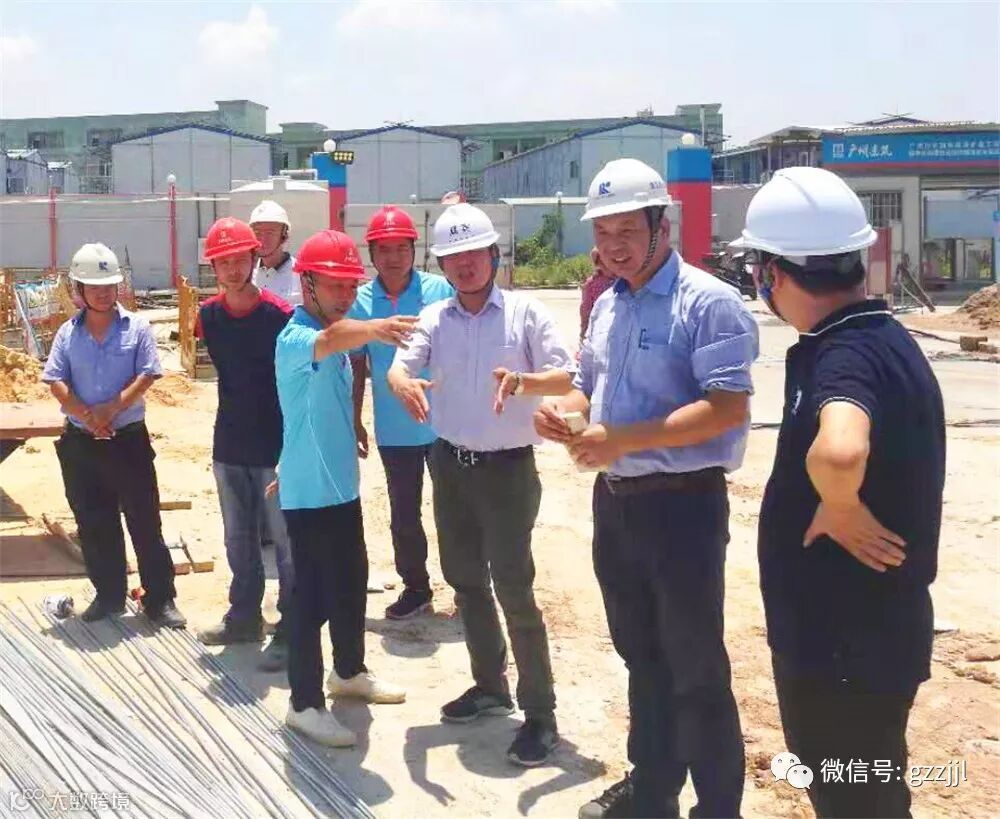 7月18日,市住建局公共设施建设处潘允其处长一行调研珠江监理广州白云国际机场扩建工程噪音安置区项目,各参建单位项目负责人陪同调研。