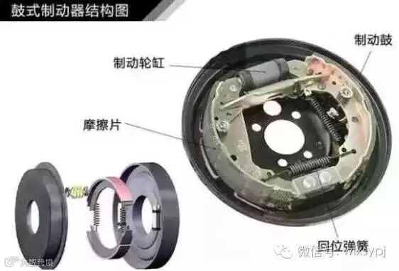 那如果是鼓式刹车,相当于你在一个很小的房子里面伸懒腰,伸出你的脚,伸出你的手,这么撑开来,发现房子不够大,你的脚,你的手,你的头,全部都在和整个滚动的房子在进行摩擦,他的摩擦面积特别大,刹车效果也是非常的好的。