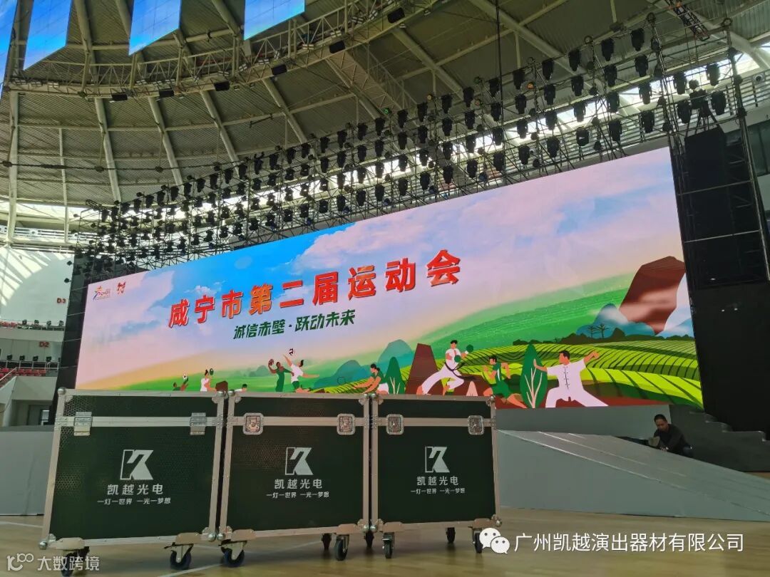夜幕下的赤壁市体育中心场馆内,灯光璀璨,五彩缤纷,美轮美奂。