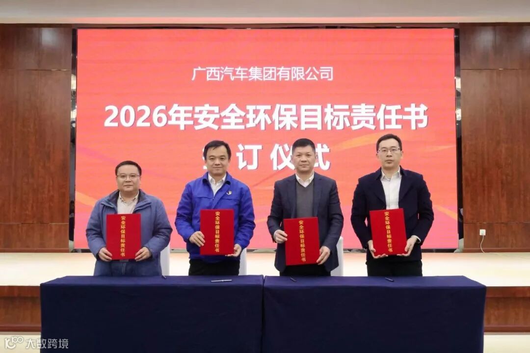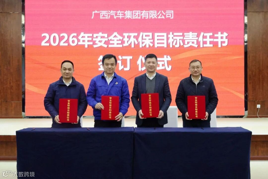 集团党委书记、董事长袁智军分别与集团所属五菱新能源、广西商贸、五菱科技签订《2026年安全环保目标责任书》;集团党委副书记、副董事长陈晓峰分别与集团所属广菱技术、柳州卓创、索罗动力签订《2026度安全环保目标责任书》。