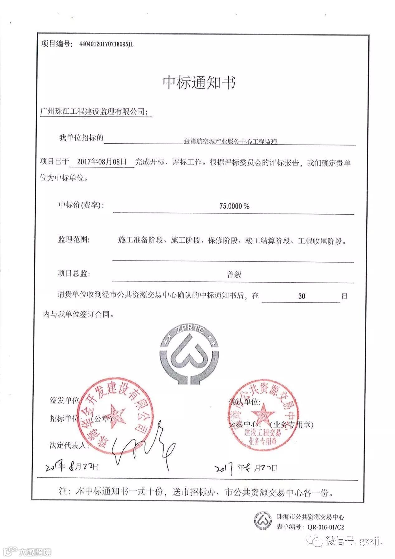 珠江监理公司近期捷报频传,连续中标多个项目,其中珠海分公司表现突出,中标珠海金湾航空城产业服务中心工程,监理费866万元。