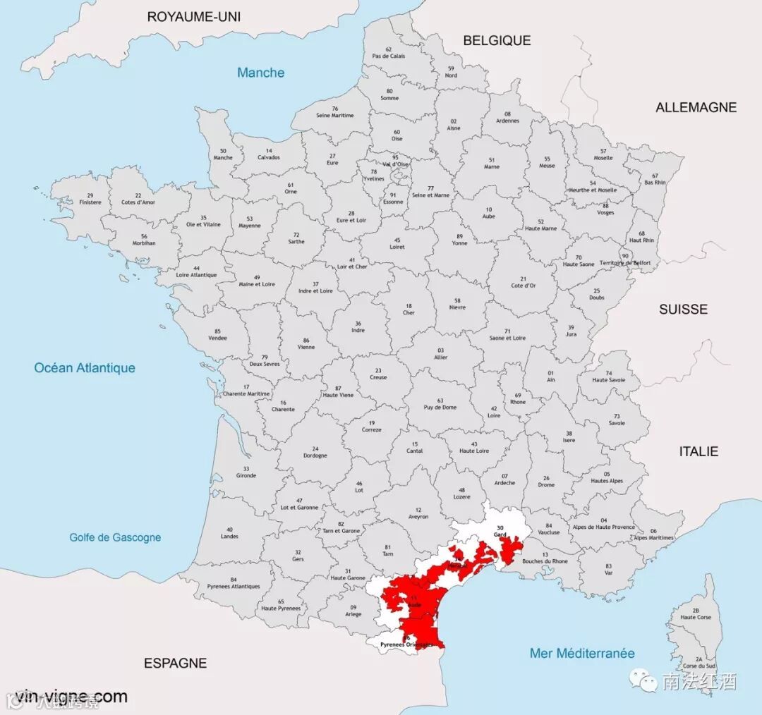 南法,其实包含,除了普罗旺斯Provence大省之外,还有朗格多克-露喜荣Languedoc-Roussillon大省。Sud de France法国南部商标,其实就是指朗格多克-露喜荣Languedoc-Roussillon。