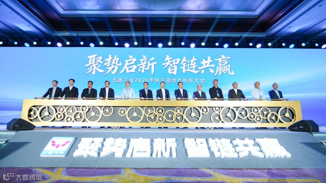 “聚势启新·智链共赢”主题仪式正式启动,袁智军、陈晓峰、沈云啸、魏明刚与9家合作伙伴代表共同握住象征2026年启航的推杆,携手推动五菱工业与供应链伙伴深度协同的新征程,推进高品质、高韧性、创新型供应链建设,推开智链共赢的宏伟蓝图!